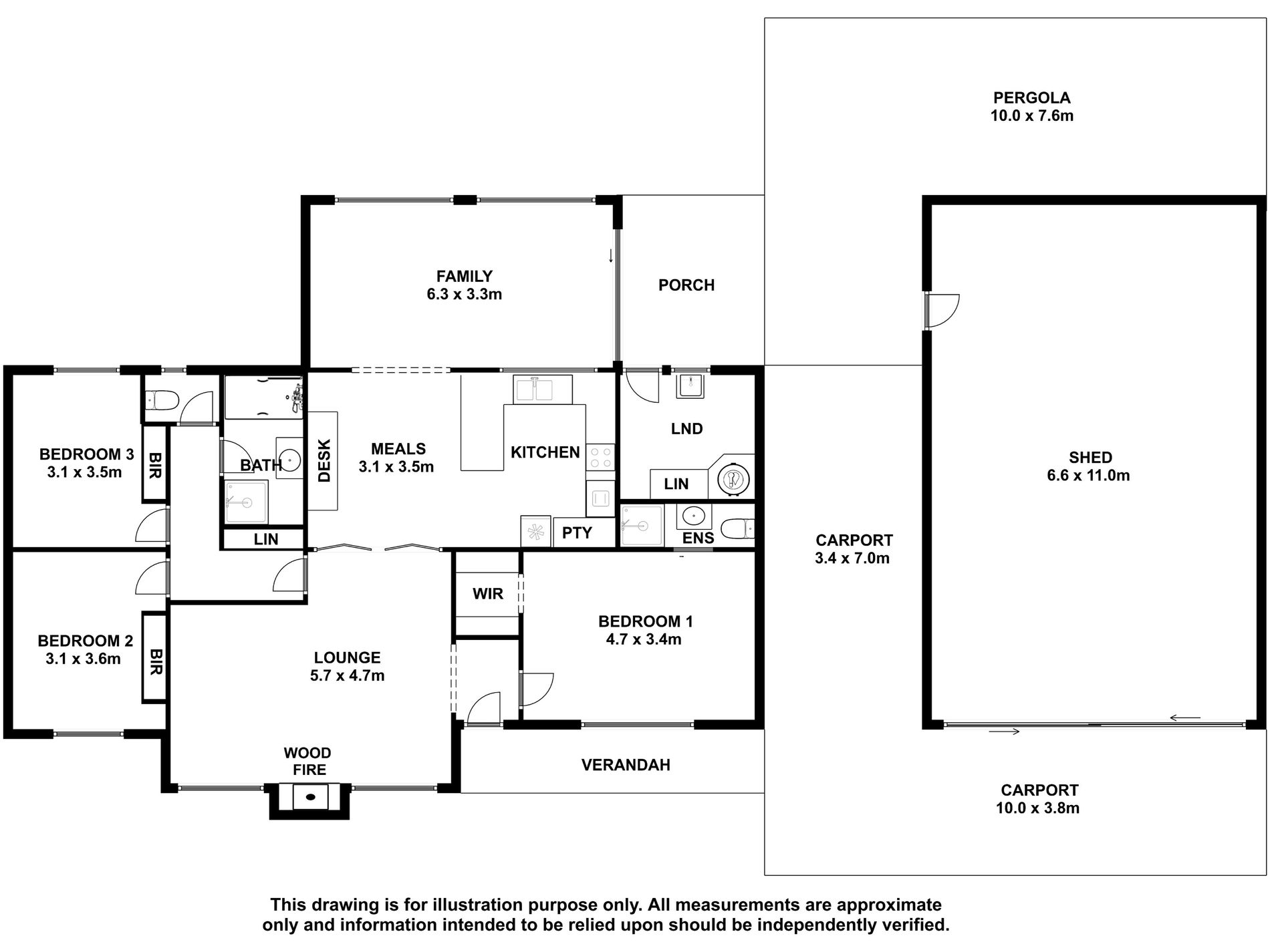 Abundant linen cupboards and storage options. Laundry outside room off the kitchen and pergola.