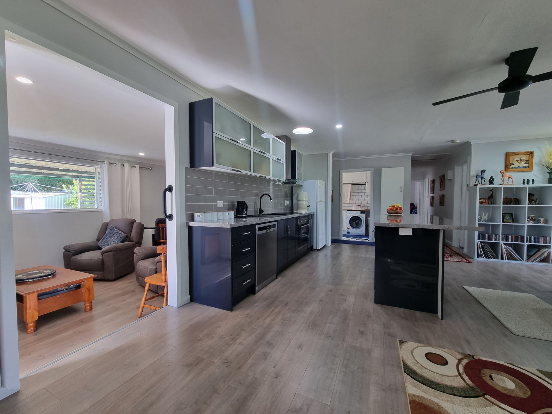 The kitchen is stylish and well equipped and has a butlers pantry, dishwasher, electric under bench oven and rangehood with a breakfast bar island bench.