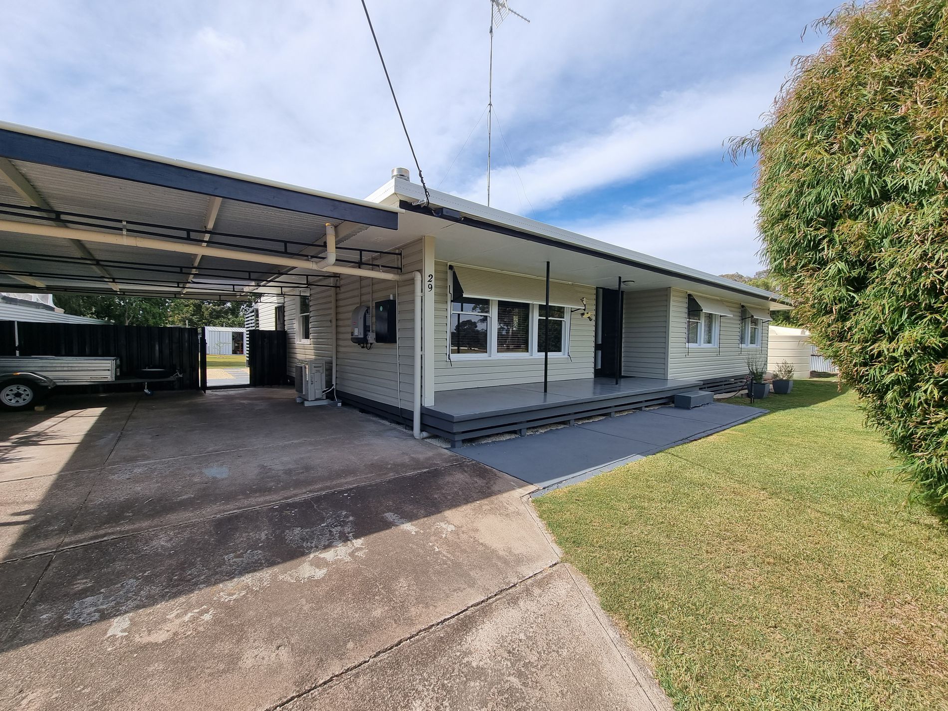 The property has had a massive makeover and upgraded features with a long list of improvements including freshly painted interior and exterior. New internal fittings including oven, R/C unit, carpets, ceiling fans, wind screens and security doors. Exterior completed connection of rain water tanks [ability to switch to town supply] New pergola area, painted exterior, 2 x garden sheds 3m x 3m, new gas hot water system and connected filters, paving and updated landscaping and improved fencing. Plus installed a 5.18kw solar power system.