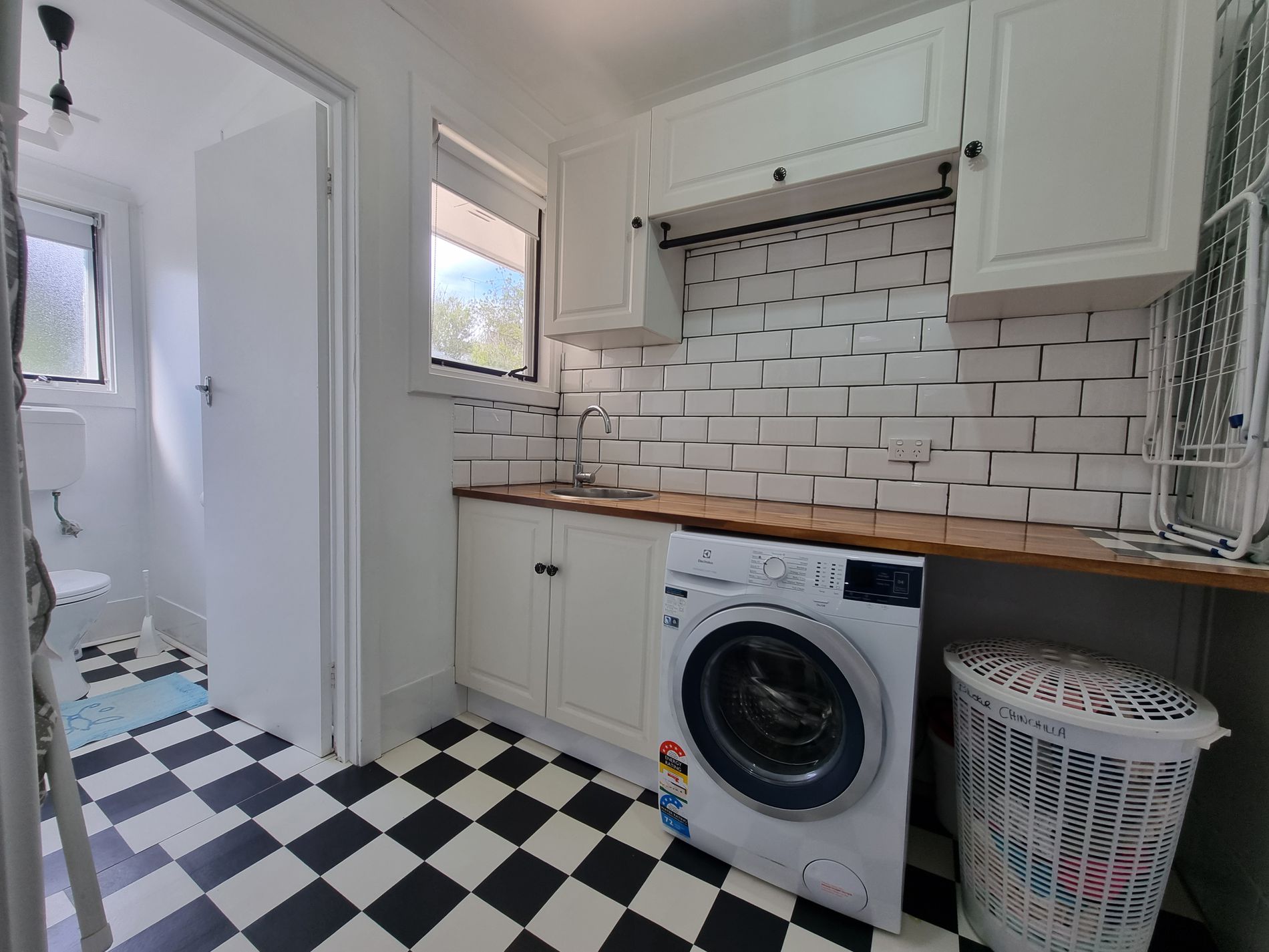 The bathroom has a separate bath & shower with the toilet adjacent the laundry. The laundry also has been updated with modern timber top and storage.