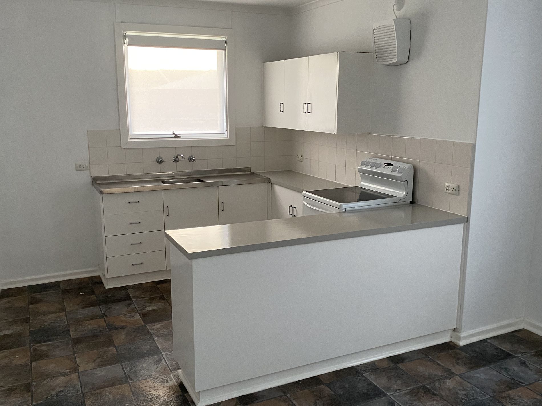 Neat and tidy Kitchen with electric cooking.